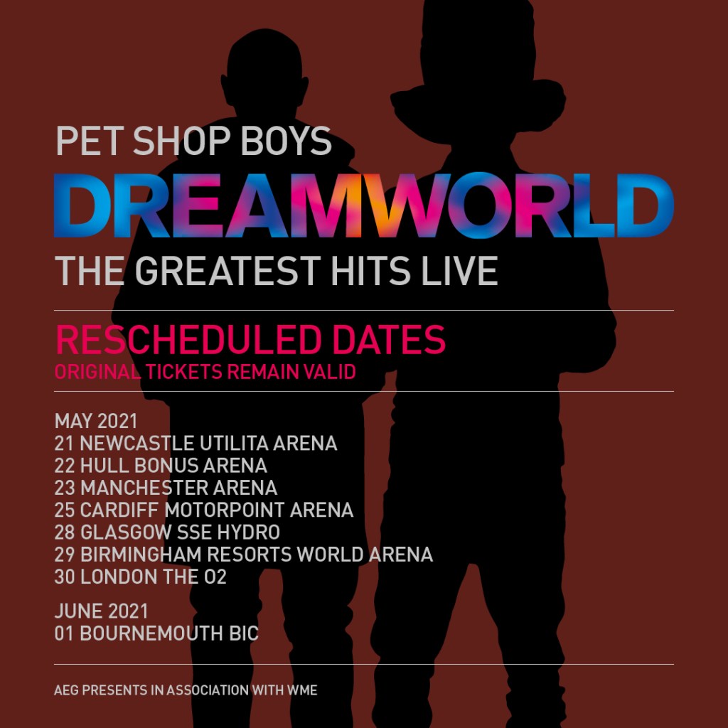 Pet Shop Boys have rescheduled the dates for their Dreamworld: The Greatest Hits Live tour which will now take place in 2022. The tour, will see the duo play UK and European shows next summer as part of their first ever greatest hits tour. The arena shows in the UK include Manchester, London, Cardiff, Bournemouth, Newcastle, Birmingham, Glasgow and Hull.