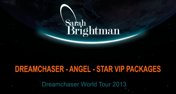 Sarah Brightman announces her Dreamchaser World Tour with Dates in America and Canada stating in February 2013 – A combination of intimate Theatre Venues and Small Arenas will be an Amazing Experience – To celebrate Sarah’s return to the stage are some superb VIP Ticket Experiences including Premium Seats, Fantastic Merchandise and even a Meet with Sarah  photo opportunity and more….